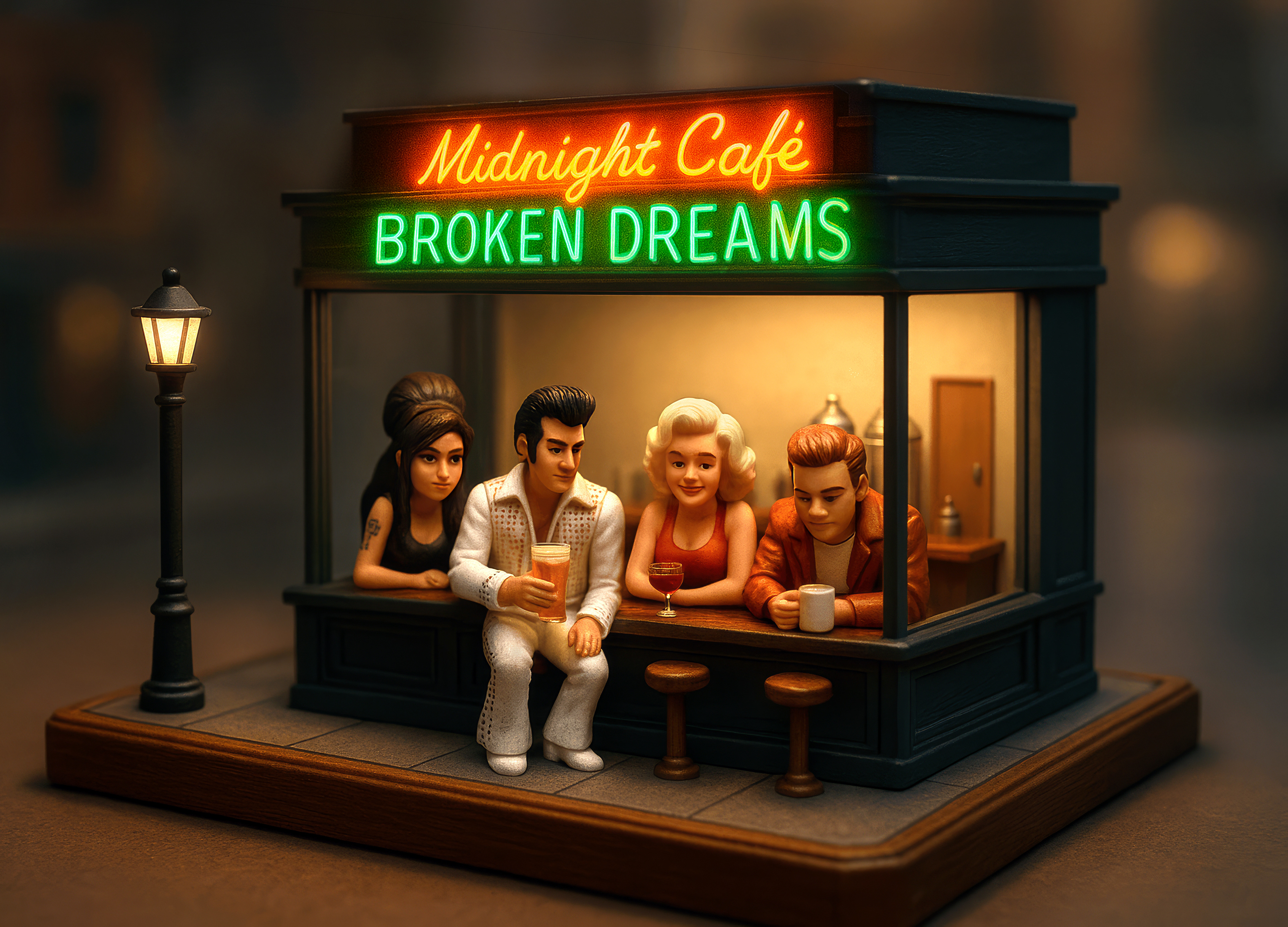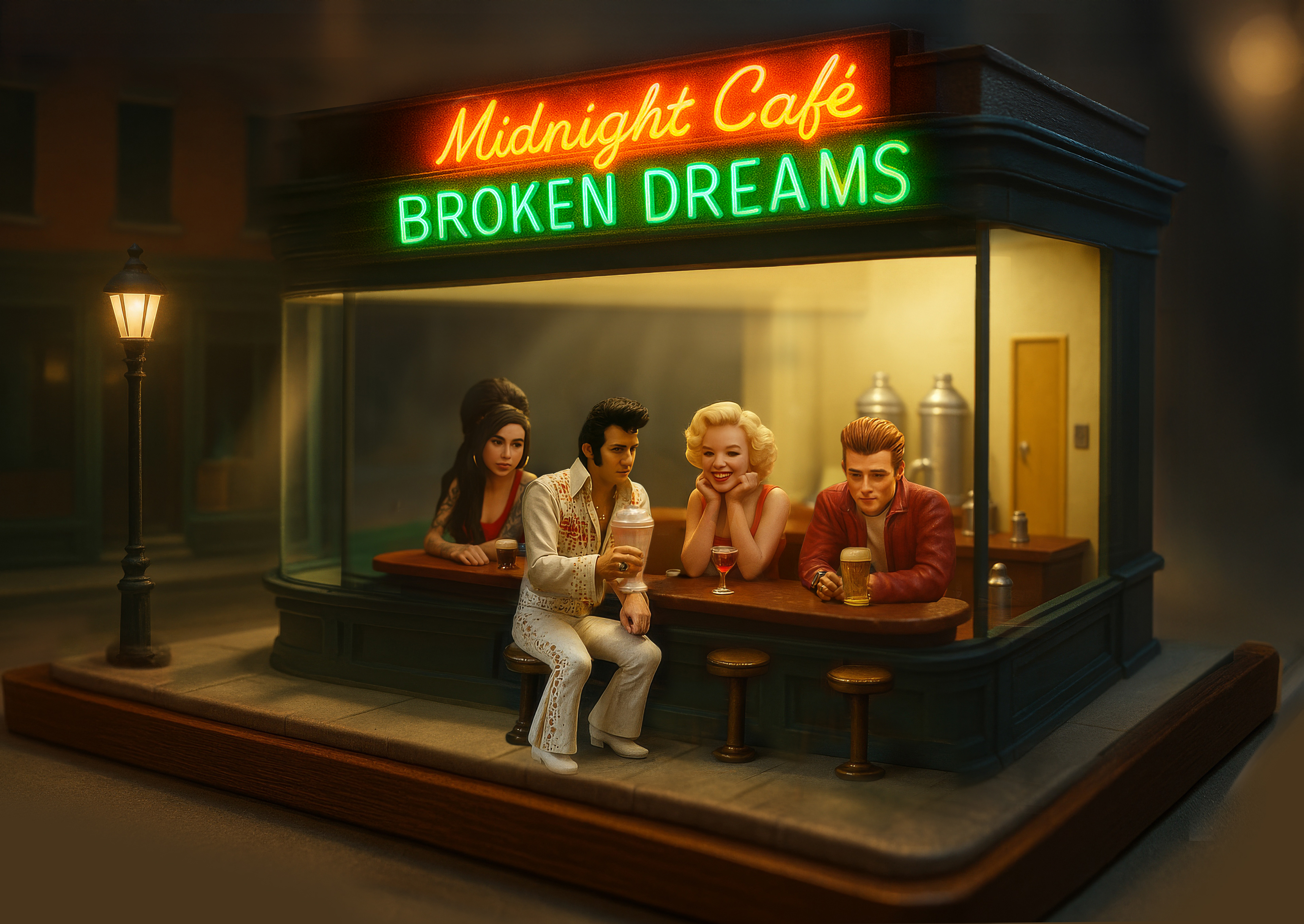 Homage to the classic painting by Edward Hopper, "Nighthawks" and pop-culture art