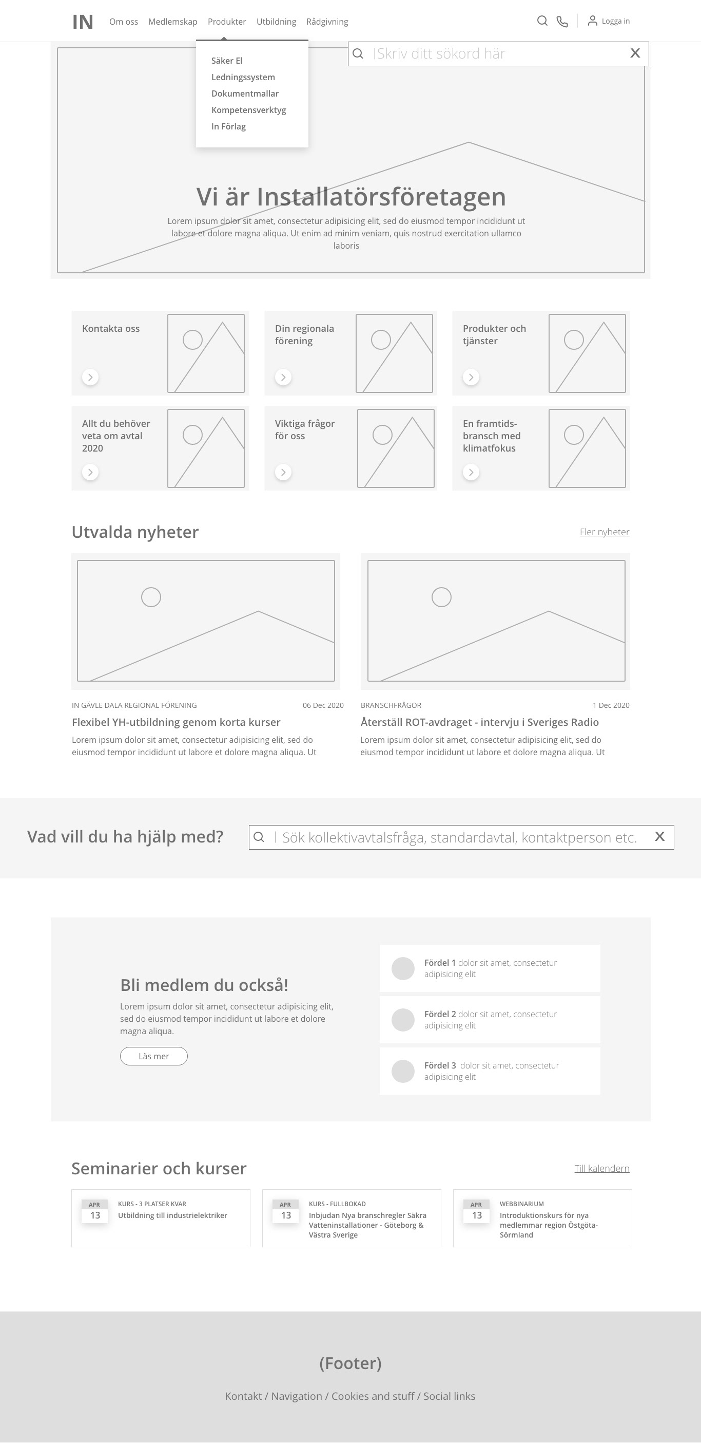 Wireframes - In.se 2.0, corporate site